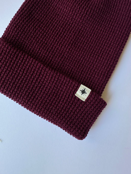 Star Cuff on Burgundy Waffle Knit Beanie
