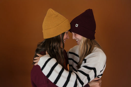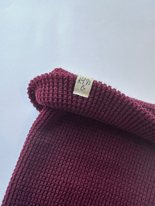 Beanie Cuff on Burgundy Waffle Knit Beanie