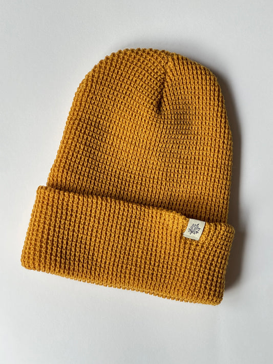 Maple Leaf Cuff on Honey Waffle Knit Beanie