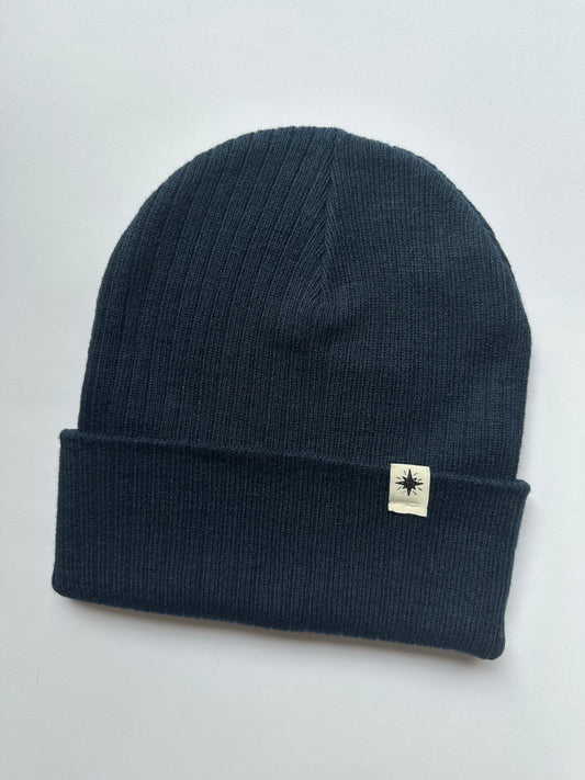 Star Cuff on Navy Ribbed Beanie