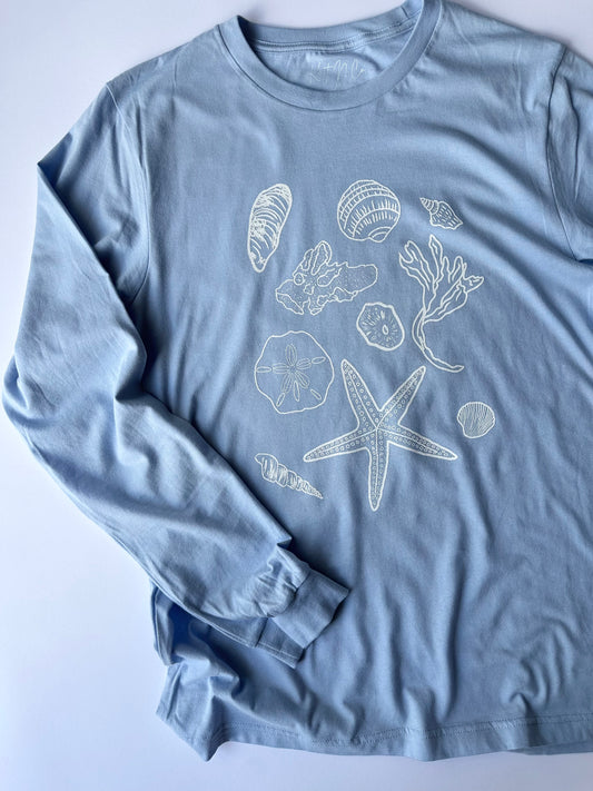 Ocean Finds on Baby Blue Long Sleeve Tee