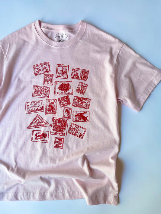 Vintage Stamps on Soft Pink Short Sleeve Tee