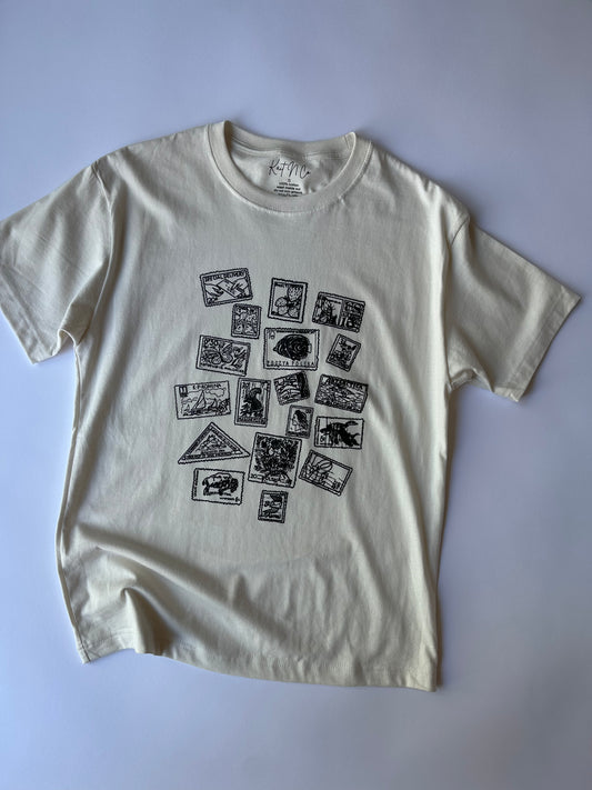 Vintage Stamps on Vintage White Short Sleeve Tee