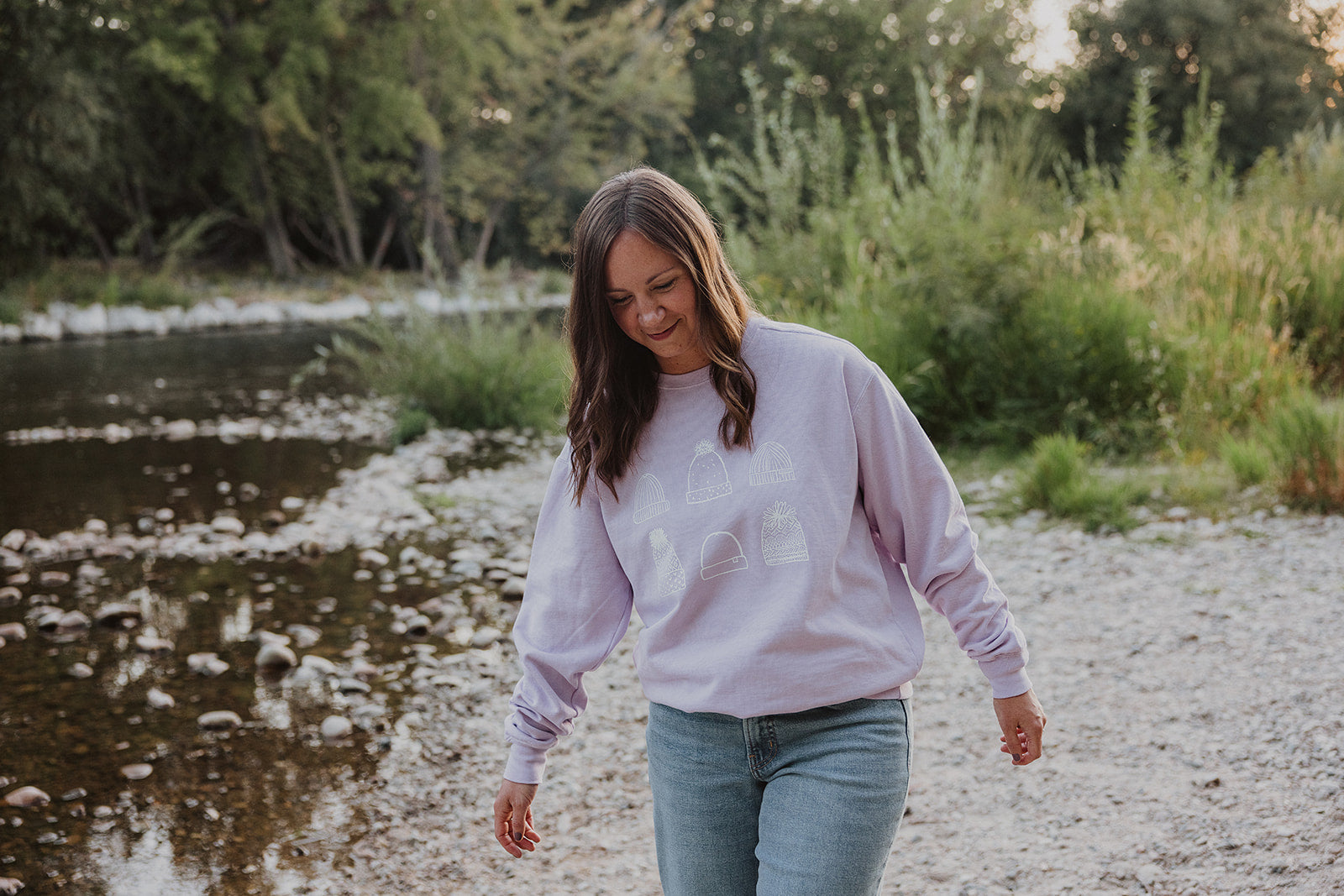 Comfort Colors sweater that is garment-dyed for that lived in look/feel and almost no shrinkage. Unisex relaxed fit. 80% cotton/20% polyester with 100% cotton facing. Mid-weight. Rib collar, cuffs and waistband. Side seams.